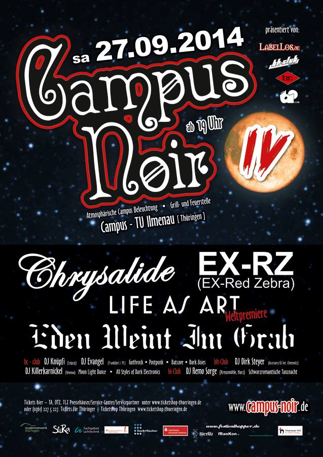 Electro / Industrial / EBM / Synthie = Ein Campus | Drei Clubs | Eine Veranstaltung | Live-Bands & DJs == CAMPUS NOIR IV ------ Sa, 27.09.2014