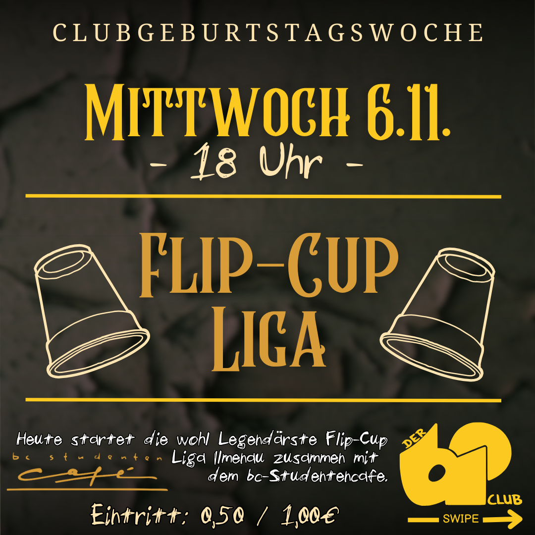 Dann meldet euch als Team für unsere Flip Cup Liga an! Hier treffen Geschick, Geschwindigkeit und strategisches Trinken aufeinander und sorgen für Abende voller Spielspaß und Spannung!
