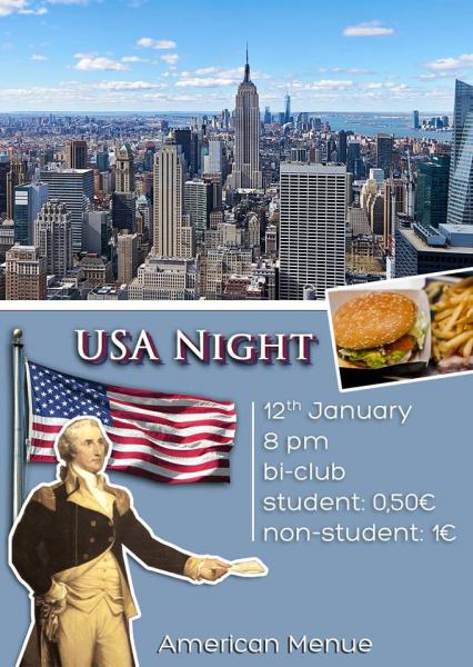 Spring' mit uns über den großen Teich und komm' zum US-amerikanischen Abend im bi-Club. Genieße Burger und Pommes während wir dich auf einen Road Trip mitnehmen und dir mehr von der US-amerikanischen Geschichte, Musik und Landschaften zeigen. Außerdem haben wir einen kleinen two-step-Workshop organisiert - ein US-Abend wäre nicht komplett ohne ein bisschen two-step!