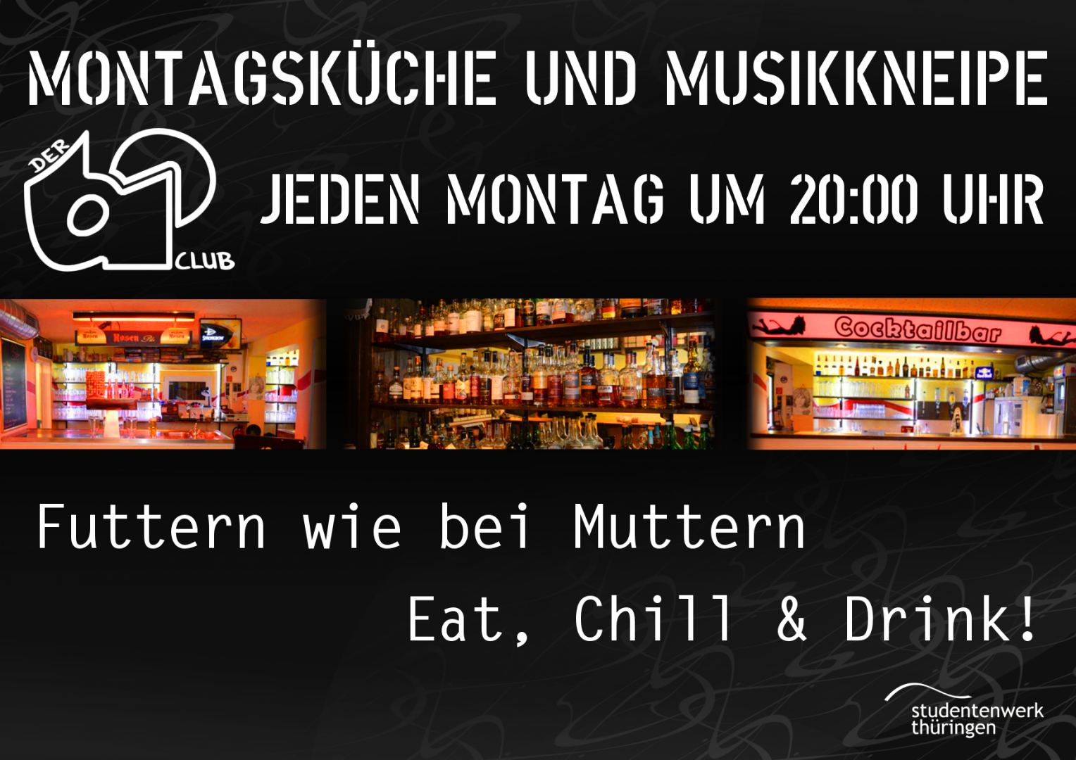 Montags gibt es bei uns einen ruhigen Einklang in die Woche. Warmes Abendessen, ein kühles Bier, leckere Cocktails und Musik, wo für alle was zum Genießen dabei ist.