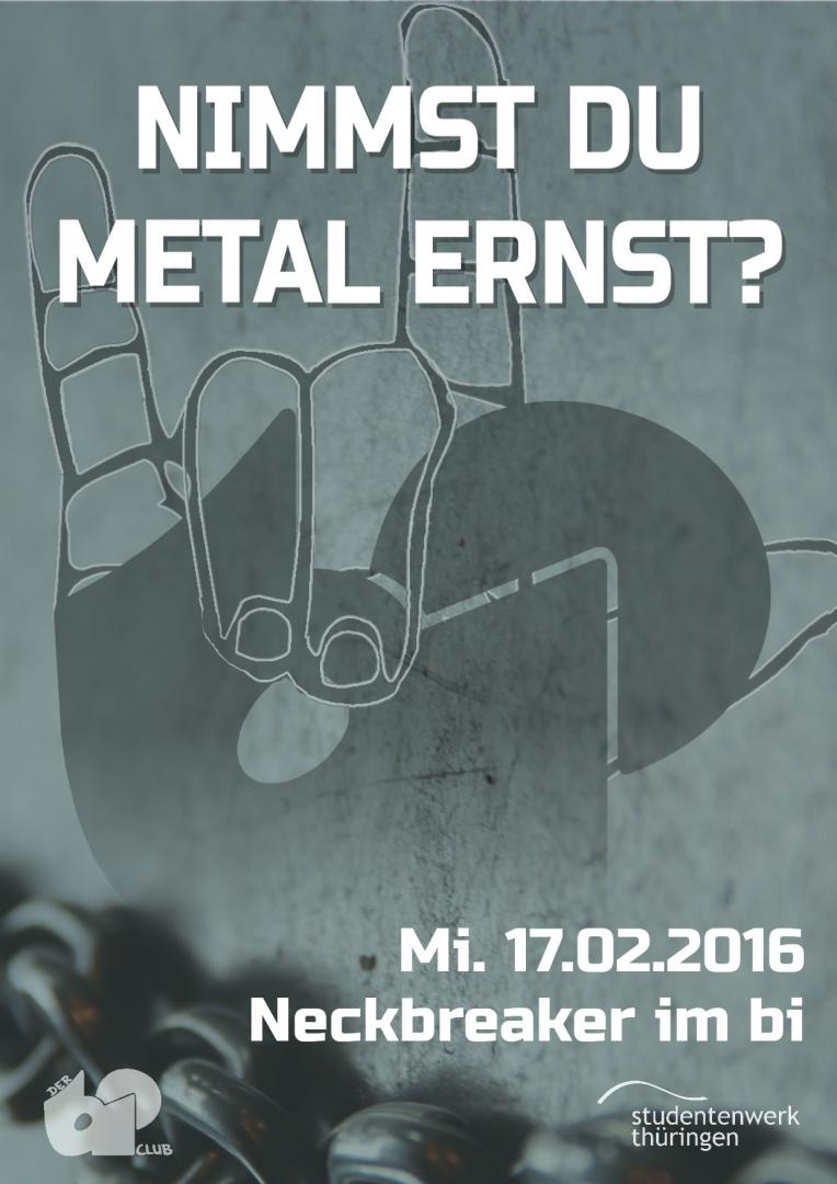 Heute werden wir wieder zum bösen schwarzen Metal-Club und das heißt bei uns: Neckbreaker! Egal ob Arch Enemy, Alestorm, Exodus, Kataklysm, Neaera, Powerwolf oder Sabaton - erlebt mit uns die wunderbar harte Welt des Metals. Damit die Kopfschmerzen vom Headbangen auch einigermaßen erträglich sind, gibt es dazu Iron Maiden - Fear of The Dark Bier für ne Mark. Lasst die Nacken brechen!