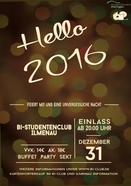 Hello 2016 - heißt zusammen mit uns am 31.12 im bi-Studentenclub das neue Jahr willkommen.