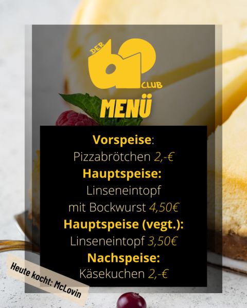 Hauptspeise | Linseneintopf (vegan) | 3.50 € |