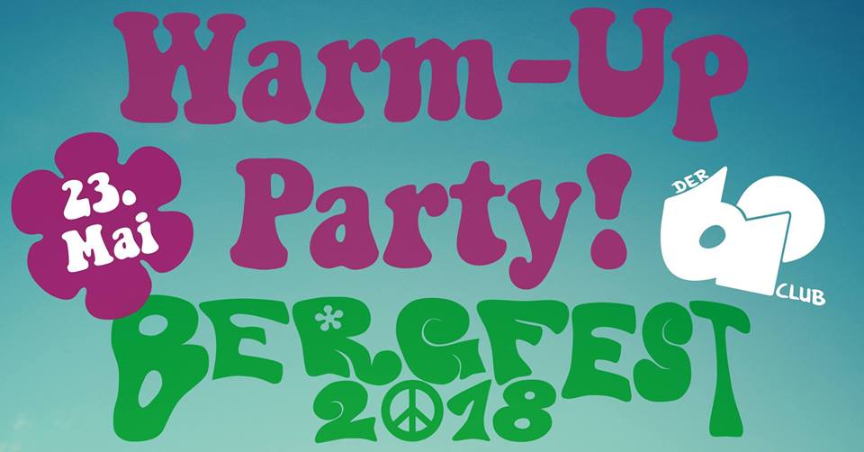 Die diesjährige Bergfestwoche findet vom 11.06. - 17.06.2018 unter dem Motto "Don't worry be Hippie!" statt. Doch wir können es nicht mehr abwarten und laden euch daher zur offiziellen Warm Up Party für das Bergfest 2018 ein.