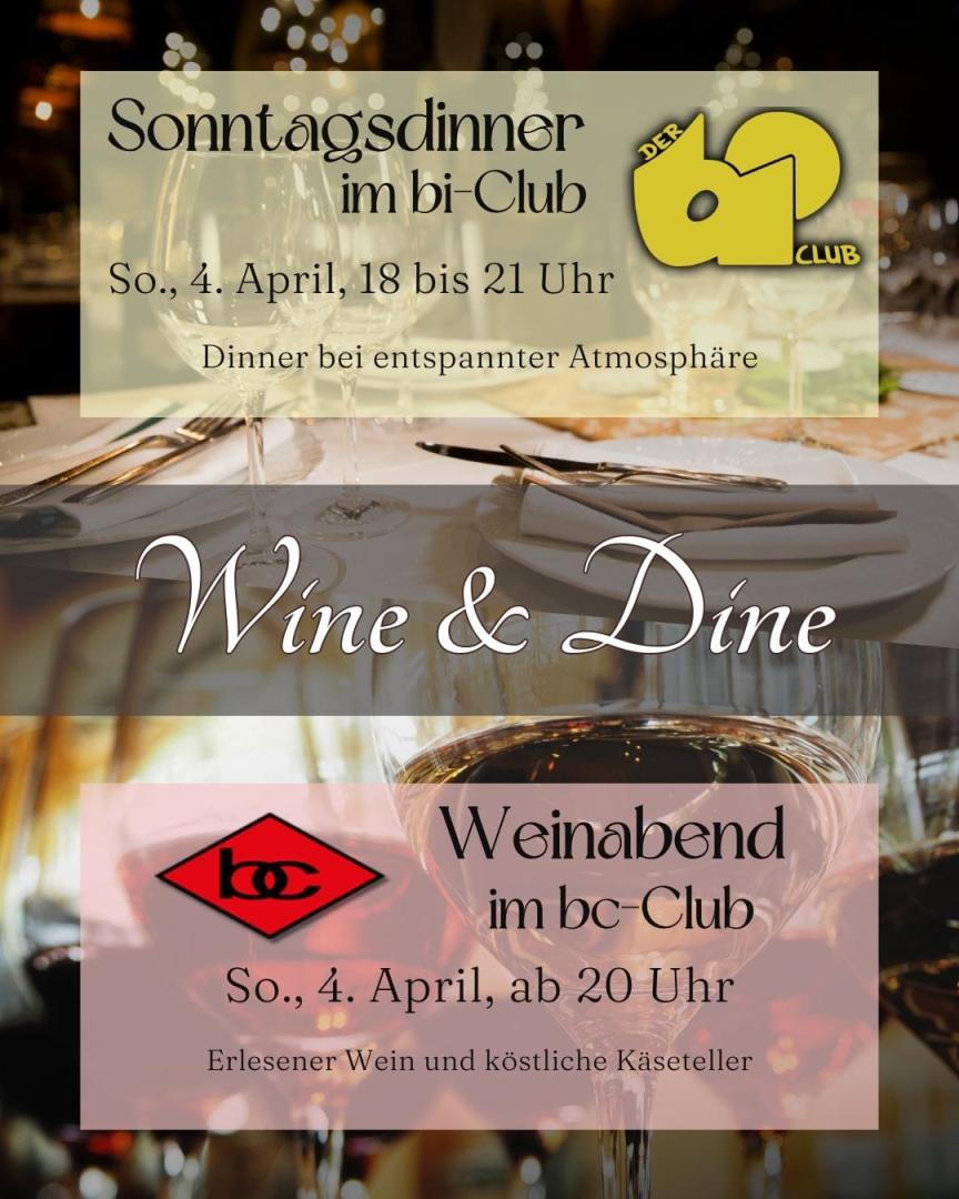 Ab 18 Uhr starten wir im bi-Club mit einem leckeren Dinner in gemütlicher Atmosphäre - perfekt, um gemeinsam zu genießen und den Abend entspannt einzuläuten. Ab 20 Uhr geht's weiter im bc-Club, wo euch eine feine Auswahl an erlesenen Weinen und köstlichen Käseteller erwartet. Ein Abend voller Genuss, entspannter Gesellschaft und guter Gespräche!