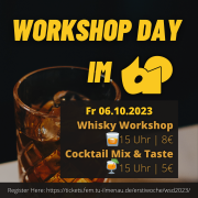 Pina Colada, Caipi und Co.: Ein gut gemixter Cocktail, mit oder ohne Alkohol, darf auf keiner Party fehlen. Dabei ist die Zubereitung von Cocktails eine der anspruchsvollsten Tätigkeiten in unseren Studentenclubs. Wer sich mit dieser sehr anspruchsvollen und spannenden Tätigkeit näher beschäftigen möchte, erhält in diesem Workshop einen Überblick über das elementare Wissen sowie viel praktische Übung im Zubereiten der gängigsten und klassischen Cocktails.